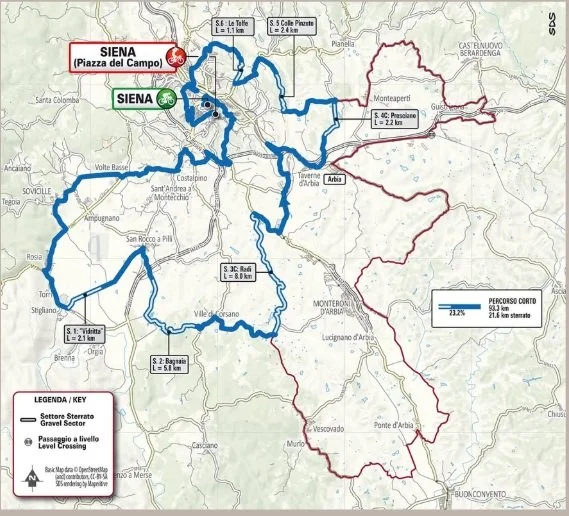 Choose between Gran Fondo Strade Bianche Estra – Gran (144.3 km) and Gran Fondo Strade Bianche Estra - Medio (93.3 km)